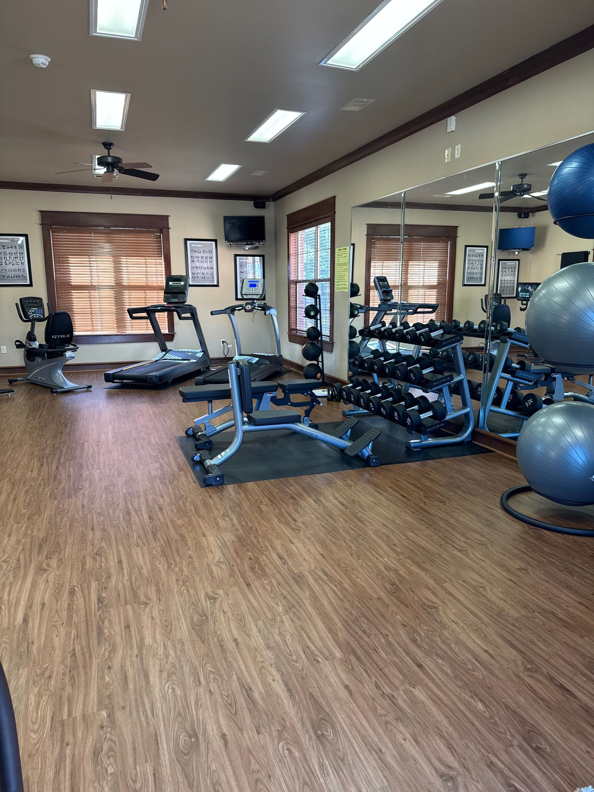 Residents enjoy a 24 hr / 7-day fitness center with brand new equipment, spacious pool for all ages, walking trail on the property, playground set, and copious green space for kids & families to walk & play.